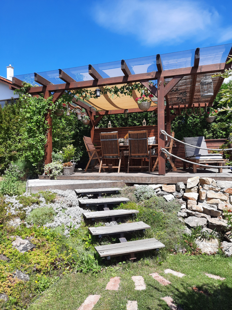 Paní Petru na tvorbě zahrady nejvíce baví to vymýšlení, a že stále něco nového vzniká. Ráda sleduje, jak se pozemek postupně mění do krásy.