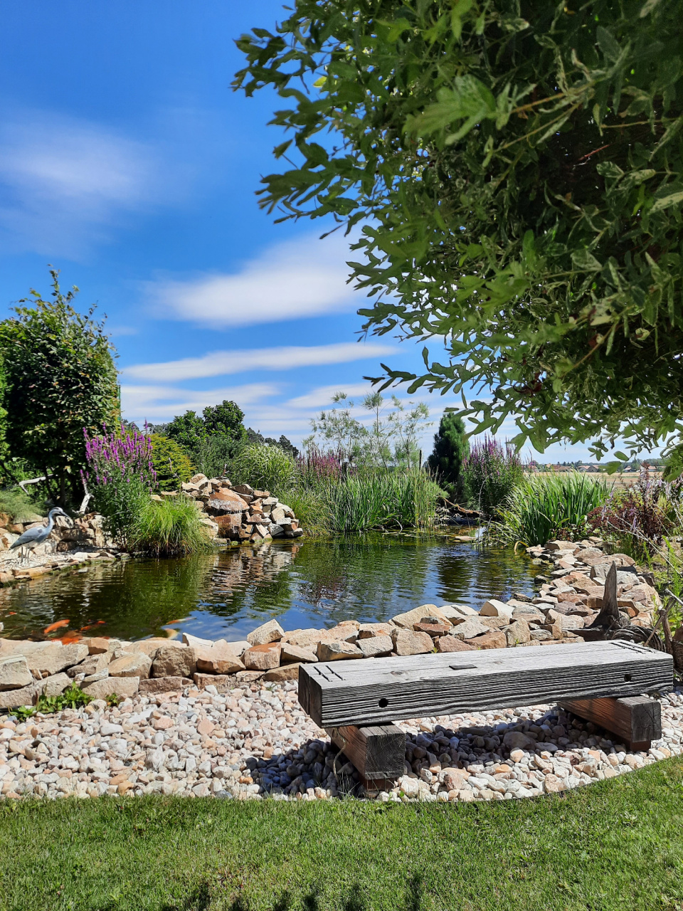 S manželem rádi společně posedí na terase u jezírka a poslouchají proud vody a kuňkání žab. Oba milují ten klid, který ze zahrady sálá…