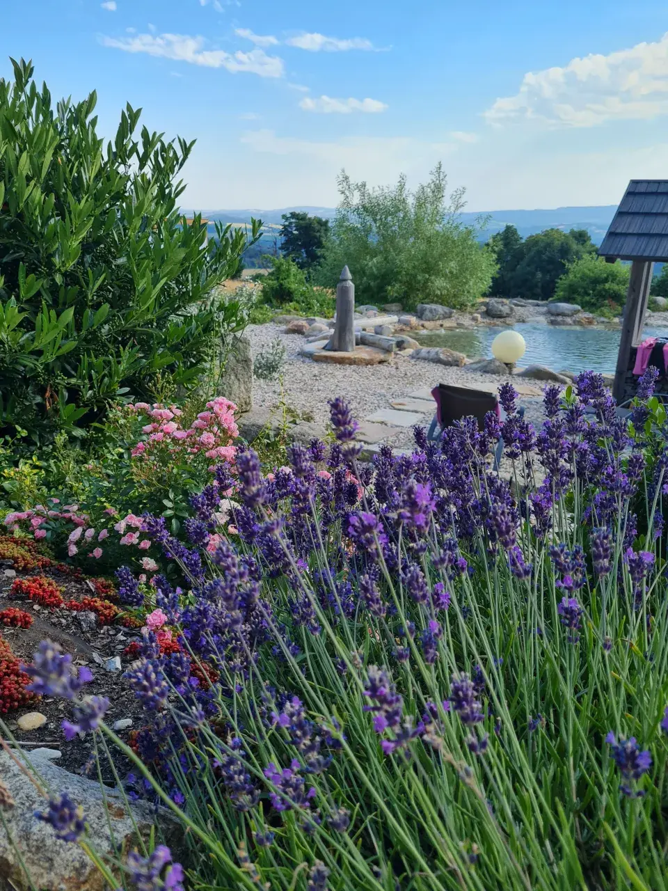 Na ochlazovací jezírko je paní Alena nejvíc pyšná, všichni k němu rádi sedají a kochají se pohledem od zahradního domku.