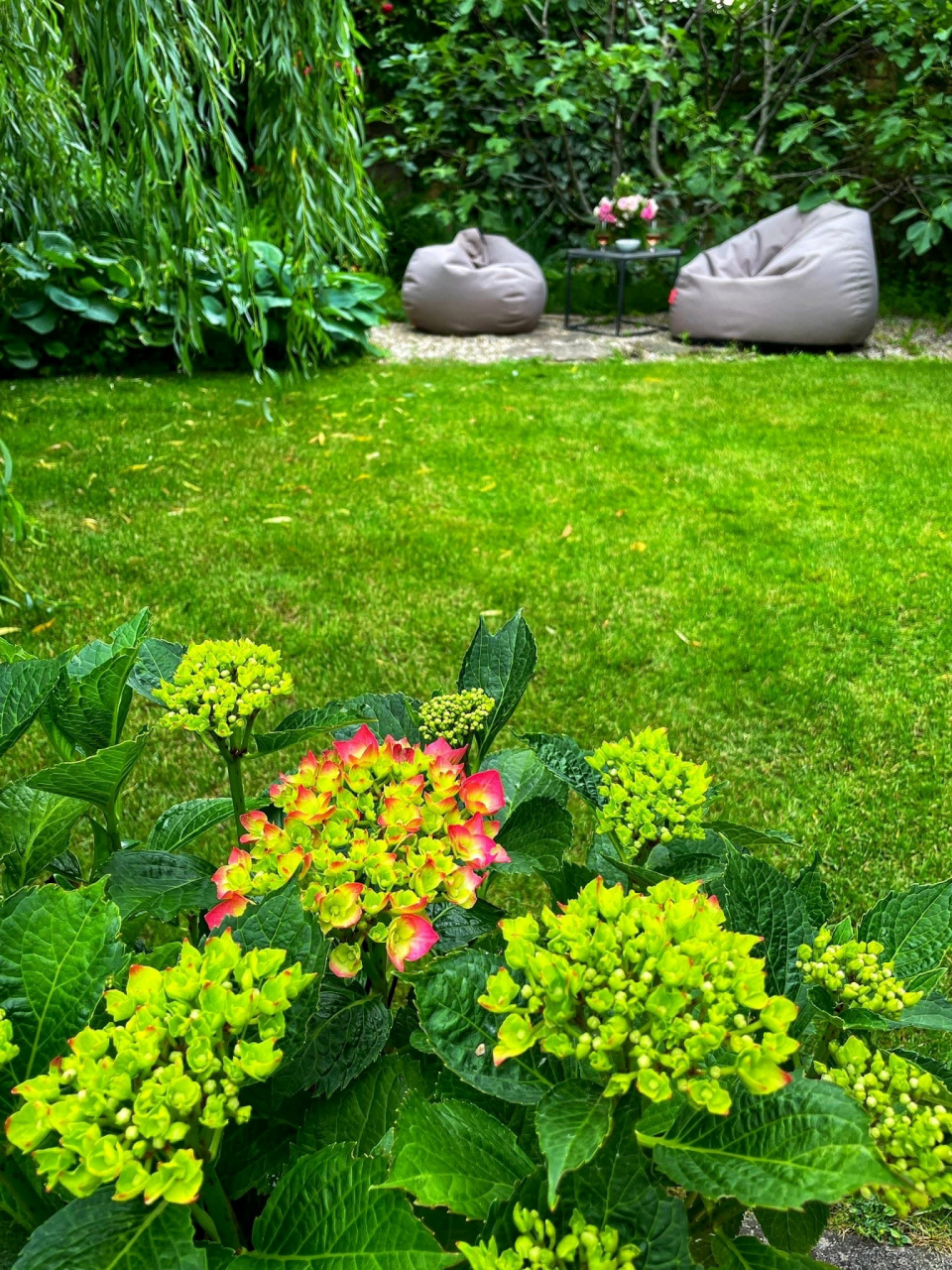 Míst k sezení a relaxaci je v zahradě hned několik. Některá se hodí k šálku kávy nebo sklence vína, jiná lákají spíš k lenošení.