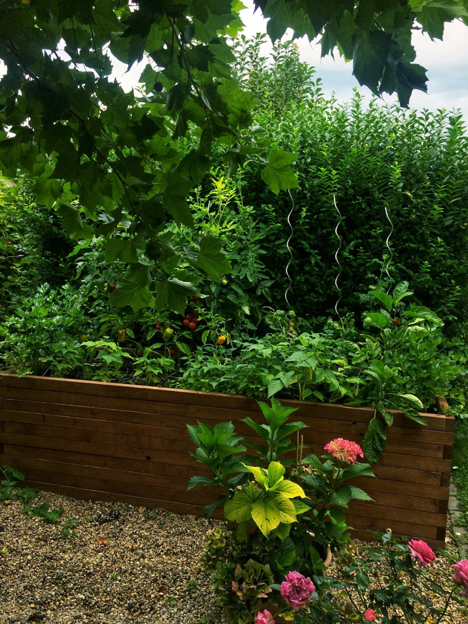 Okrasné výsadby doplňují i vyvýšené záhony se zeleninou.