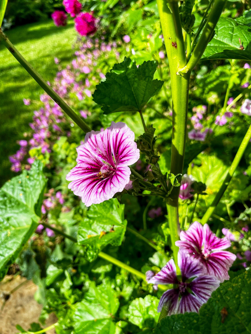 Květiny tu najdete nejen na záhonech, ale i v kětináčích. „Loni jsme počítali rostliny v nádobách a květináčích kolem domu a na balkonech. Došli jsme k číslu 56 a to už jsem i já uznala, že je jich dost,“ směje se paní Anka.
