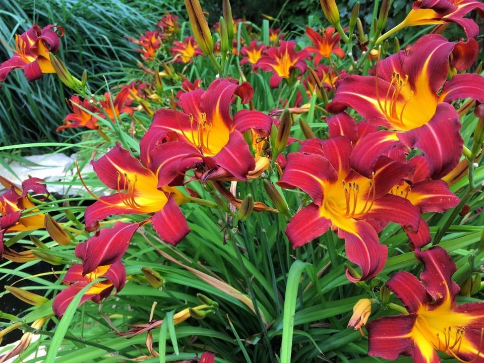Kousek od terasy je uprostřed trávníku kruhový záhon s ozdobnými travinami. „Tady jsme kdysi měli nafukovací bazén pro naši tehdy dvouletou dceru. Bazén už nemáme, ale prázdná plocha v trávníku zůstala. Tak jsem ji osázela travinami,“ vysvětluje paní Anka.