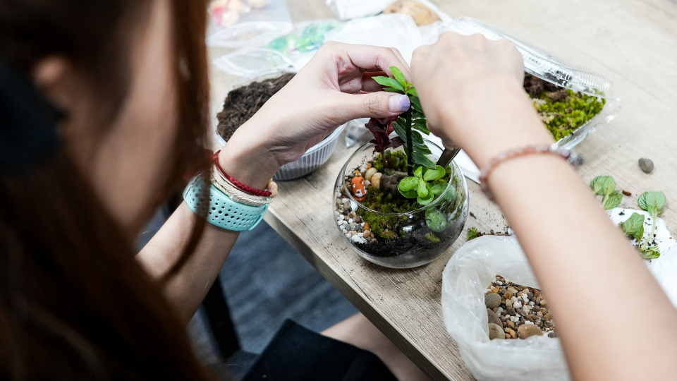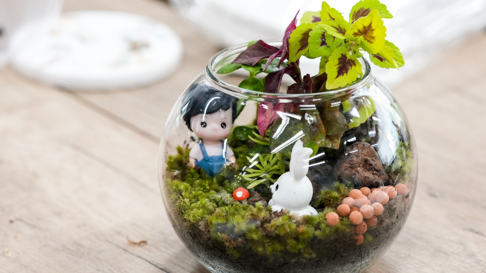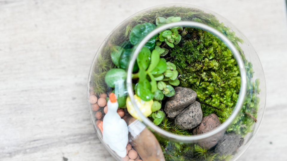 Zahradu v lahvi lze doplnit i dalšími doplňky, například kamínky či mušle
