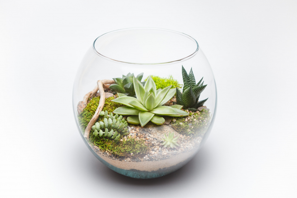 Zahrada v otevřené lahvi se osazuje nejčastěji sukulenty a kaktusy