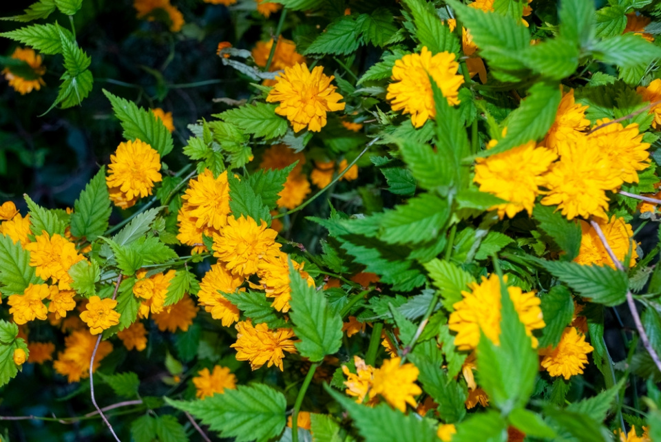 Kerria japonica 'Pleniflora' je u nás nejčastěji pěstovaná, plnokvětá, robusního vzrůstu se vzpřímenými větvemi. Dorůstá do výšky 1,5 m.