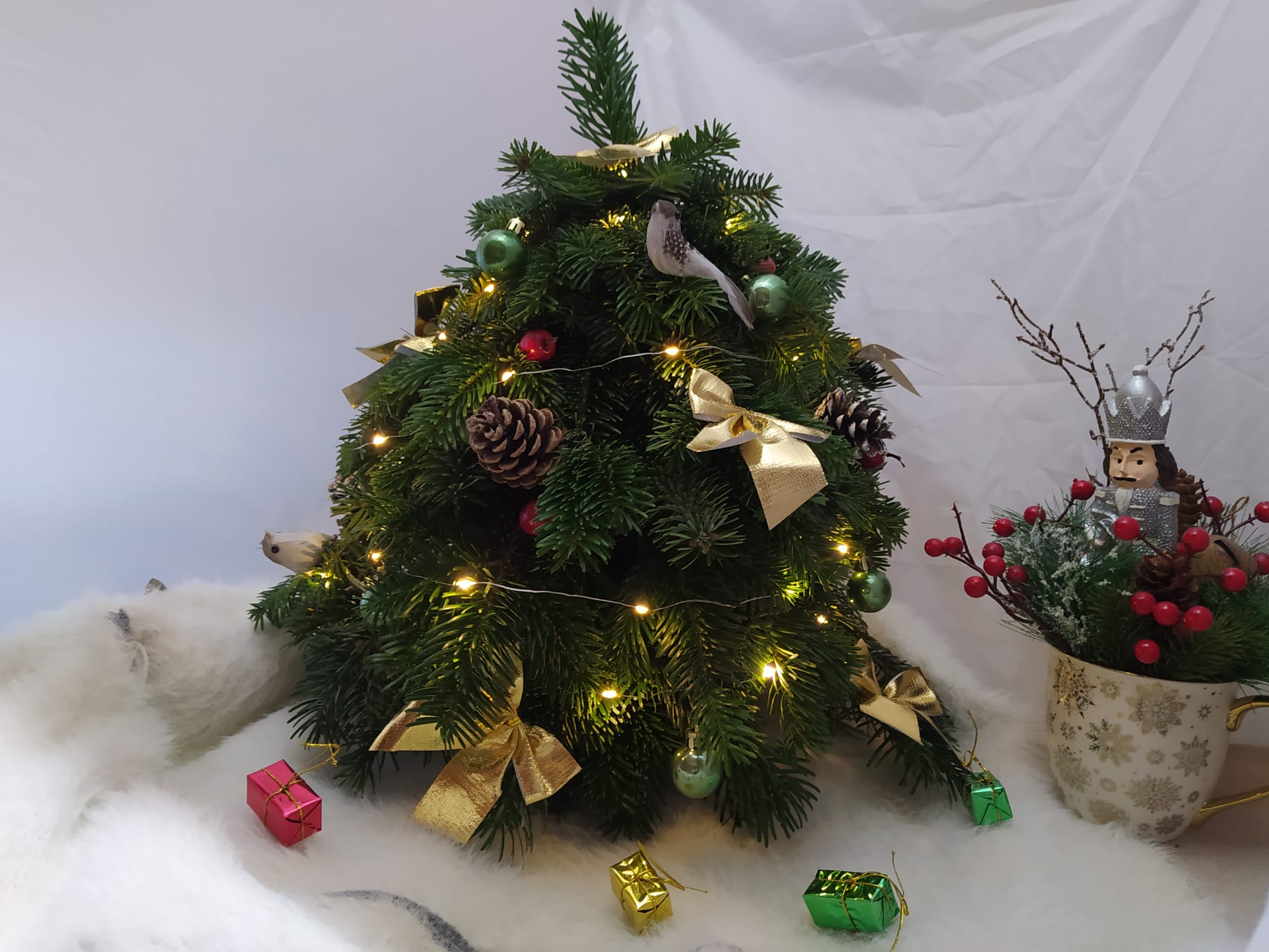 - Hotový stromeček jsme ozdobili LED světýlky, baňkami a dalšími drobnostmi. Použijte mašličky, šišky, ptáčky - čím víc, tím lépe, protože DIY vánoční stromeček je hlavně o kreativitě. Pomoci si můžete i tavnou pistolí.