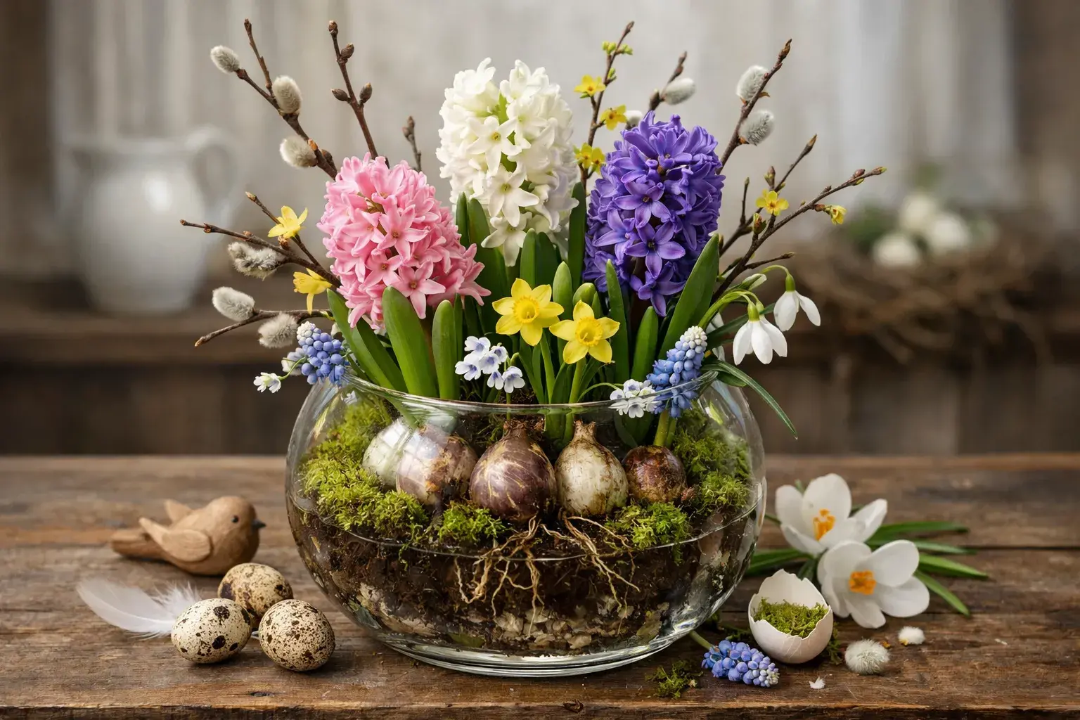 Jarní květinové dekorace: Jak vybrat mech, cibuloviny a doplňky