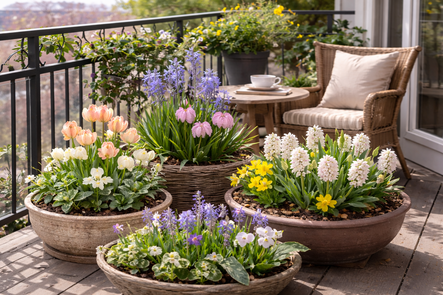 Obrovská rozmanitost tulipánů dává nekonečný prostor pro vaše barevné experimenty. Od černé až po zářivě žlutou, které můžete v míse libovolně míchat. Stačí dodržet správnou hloubku výsadby a můžete si vytvořit vlastní tulipánovou burzu přímo na balkoně.