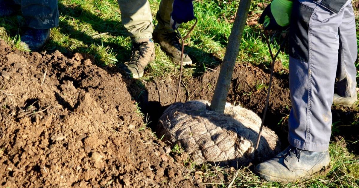 Při výsadbě dbáme na to, aby strom ve výsadbové jámě neměl zkroucené kořeny.