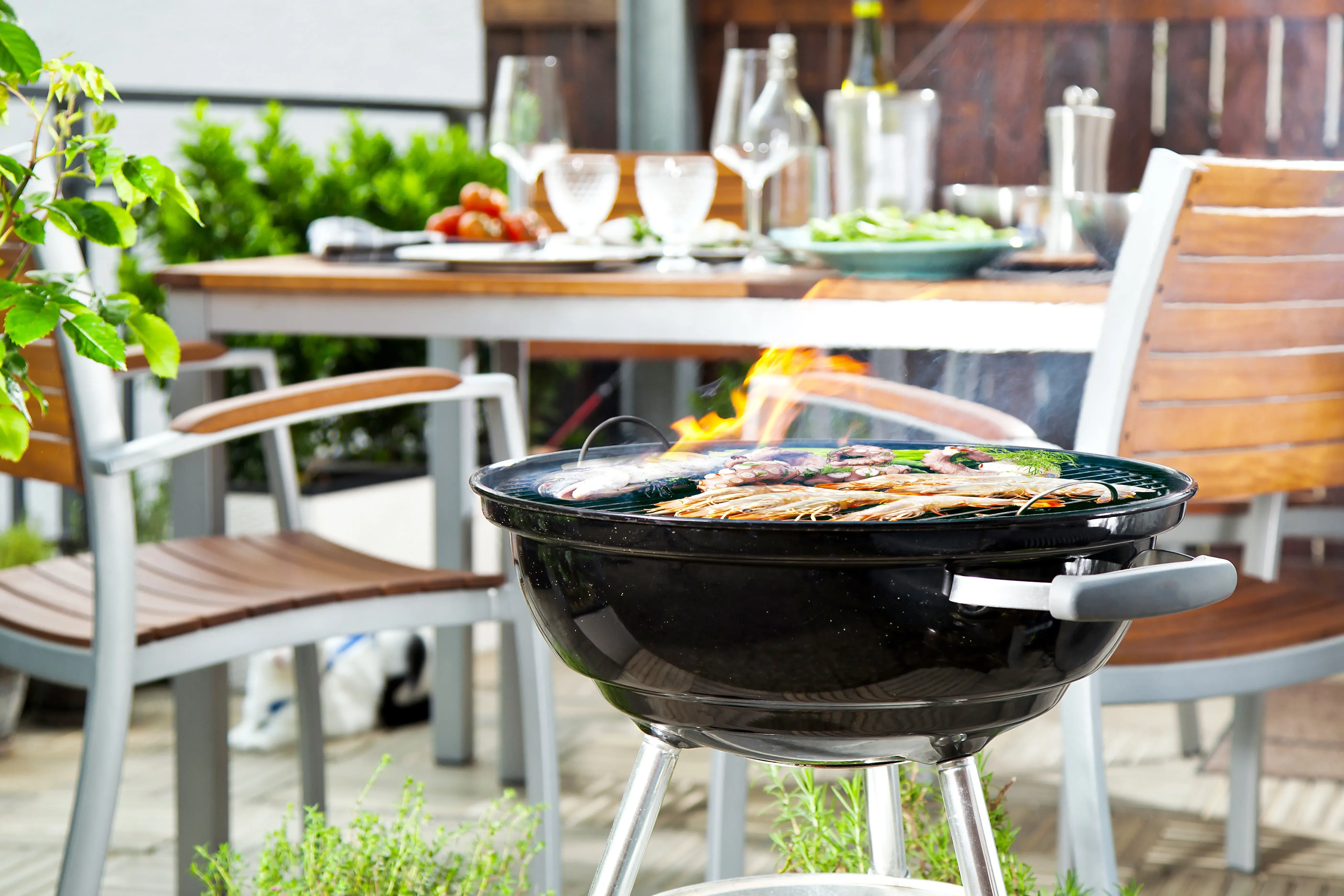 Nejlepší řešení? Vytvořte kolem grilu volný prostor bez textilu a plastů. A platí jednoduché pravidlo: když vítr unese ubrousek, unese i žhavý popel.