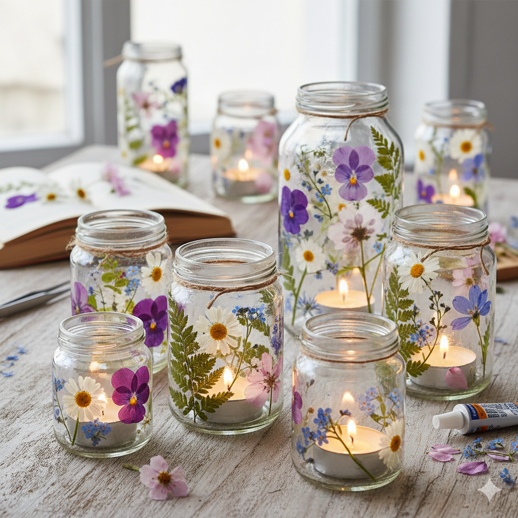 Jarní svícen ze sklenice: Jak vytvořit dekoraci z lisovaných květin
