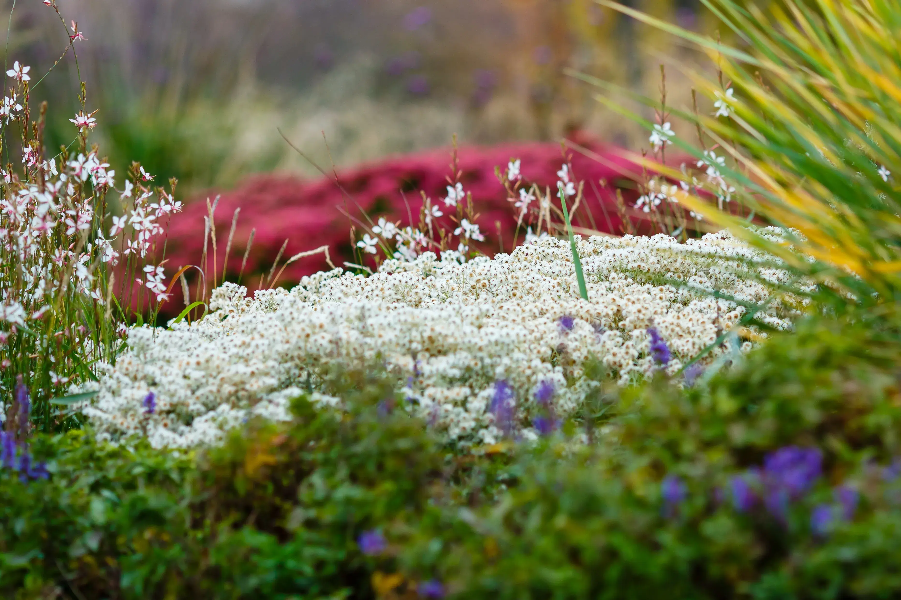 - Hrajte si s výškou: Nechte modřence vykukovat ven na delších stoncích. Hyacinty a kosatce dejte níž – fungují jako kotva, která drží stabilitu.