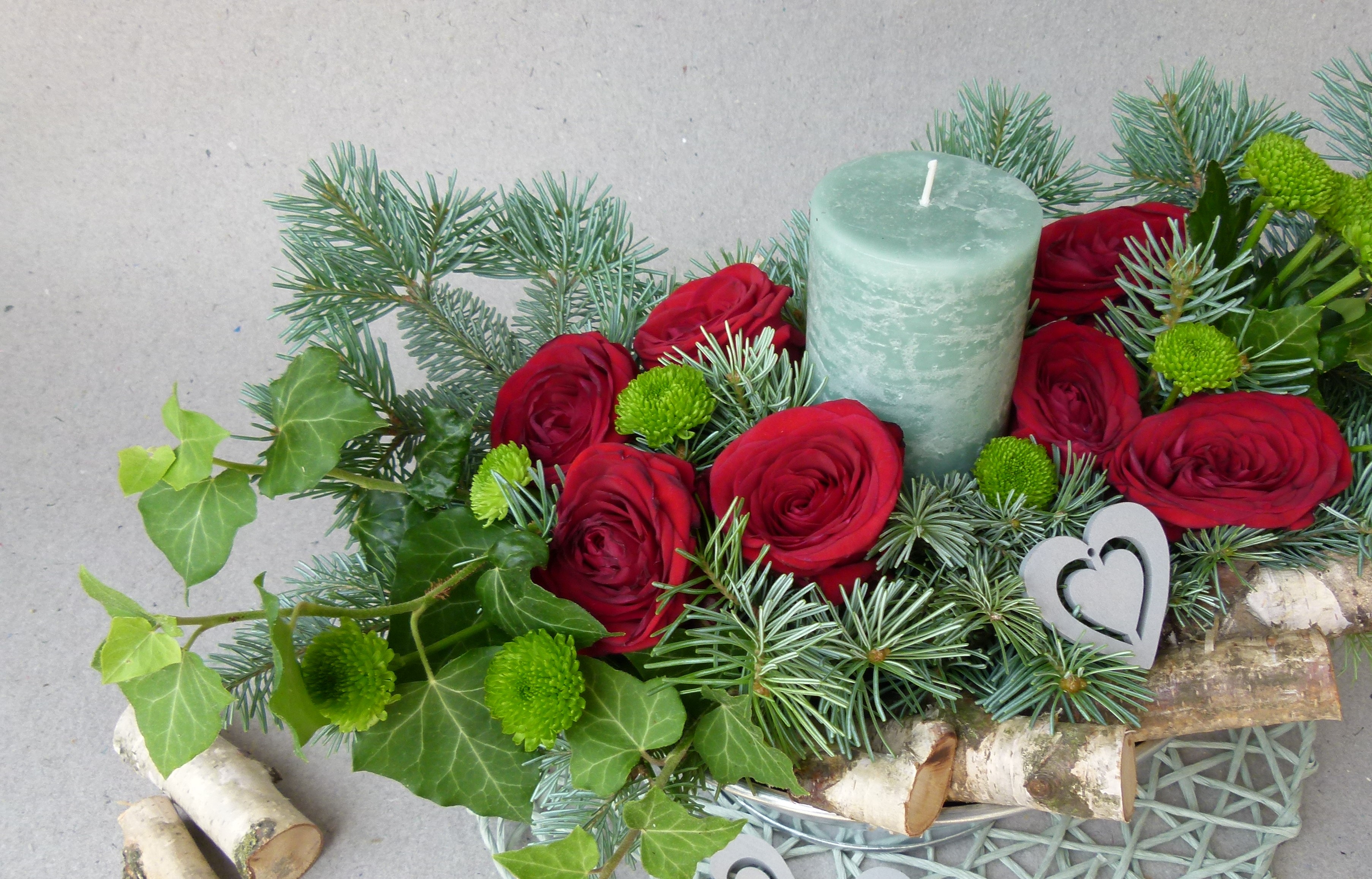 Kontrast k přírodnímu dřevu přinášejí velkokvěté červené růže. Sedm pečlivě vybraných květů dodá svícnu slavnostní hloubku, symboliku lásky i tradiční vánoční barevnost. Spojení lesa a květin, jednoduchosti a elegance, vytváří dekoraci, která nepůsobí okázale, ale přesto okamžitě upoutá pozornost. Takový svícen není jen doplňkem stolu, stává se jeho přirozeným středobodem a tichým svědkem vašich štědrovečerních okamžiků.