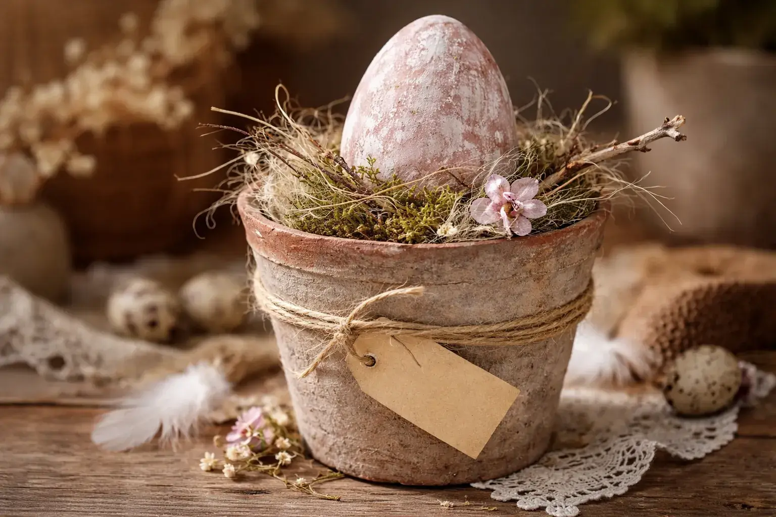 Tip redakce: Pod hnízdo přilepte jedno delší pírko a malý dřevěný štítek s nápisem „Handmade” nebo „Veselé Velikonoce”.
