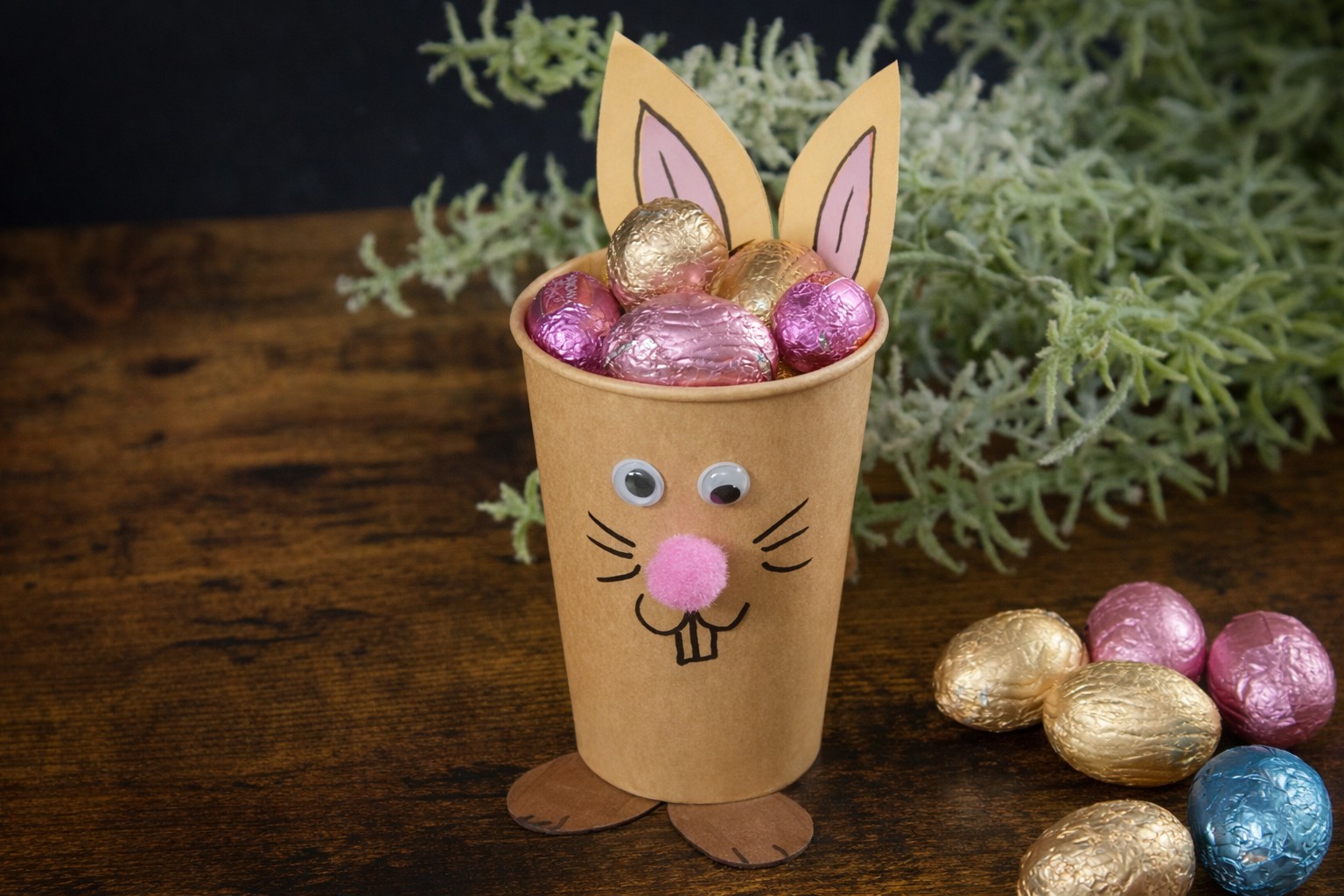 Kelímek naplňte čokoládovými vajíčky nebo jinými sladkostmi.