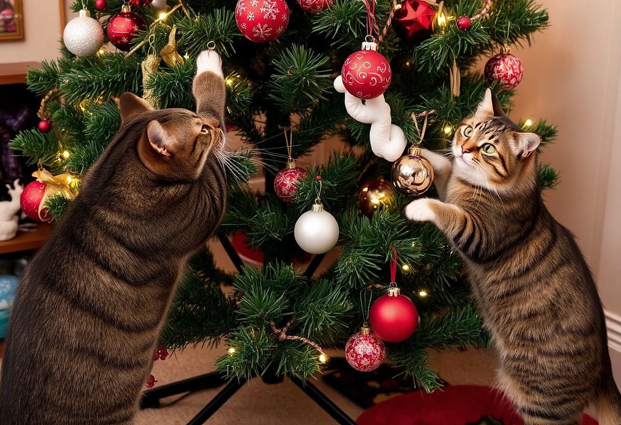 Vánoce jsou ve většině domácností ve znamení chaosu a nervozity. A to pociťují i domácí mazlíčci, kteří registrují zvláštní vůně, zvláštní barvy a zvláštní předměty, které se v jinak pokojném bytě najednou objeví. A když se uprostřed této "apokalypsy" zjeví vánoční stromeček, na který páníčkové bůhvíproč navěsí lesklé a třpytivé ozdoby, rozsvítí na něm světýlka a vše vylepší tunou řetězů, lamel a dalších dekorací, je tu pro zvířátka zajímavá atrakce. Kterou navíc stojí za to prozkoumat. Ideálně hodně zblízka. Je to nová hračka, není to nová hračka?