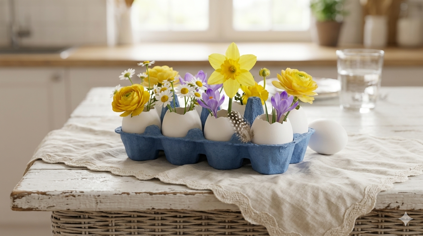 Velikonoční dekorace ze skořápek je rychlá, levná a zvládne ji každý. Stačí základní věci z kuchyně, pár květin a trocha kreativity. Výsledkem je neobyčejná výzdoba, která působí přirozeně a svěže.
