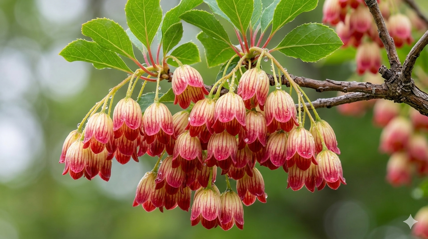 Pokud byste v běžném zahradnictví hledali „těhotný květ”, nejspíš odejdete s prázdnou. Jde totiž o etymologickou hříčku vycházející z jejího řeckého názvu Enkianthus. Ten totiž vznikl spojením slov enkyos (těhotný) a anthos (květ).